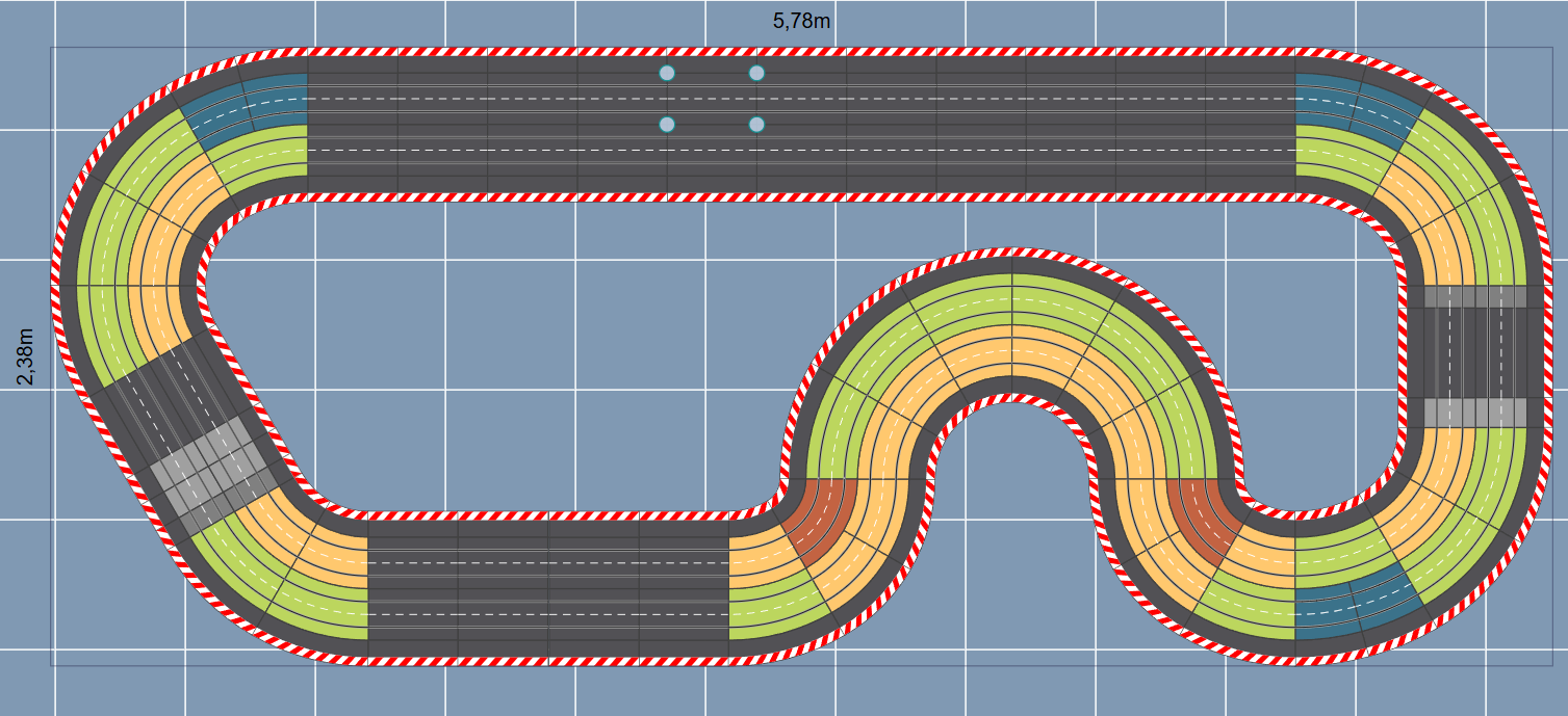 Wir planen und organisieren auch Anlagen speziell nach Kundenwunsch als fest installierte Rennbahn für bis zu max. 6 Fahrspuren.